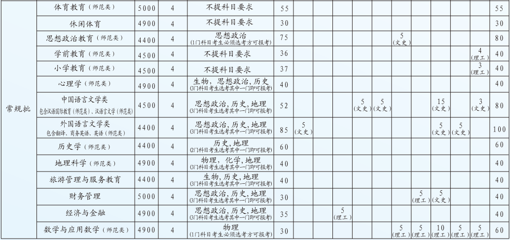 一、本科招生计划表