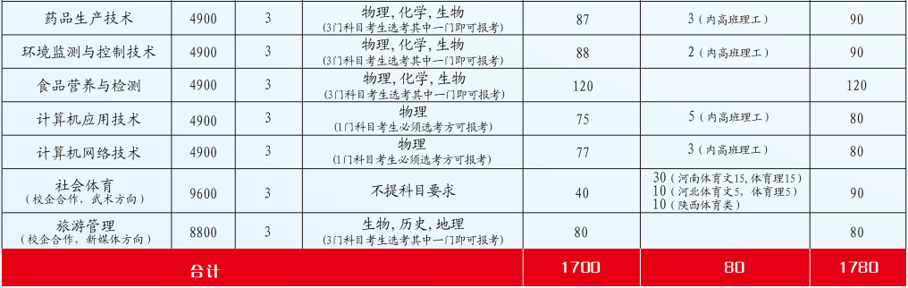 二、专科招生计划表