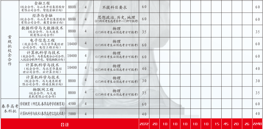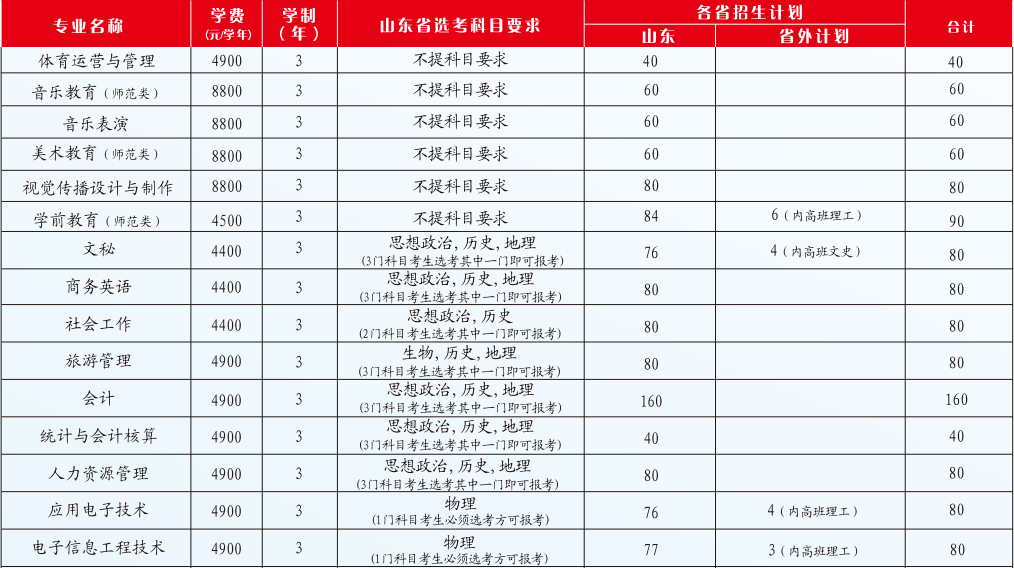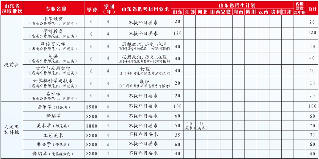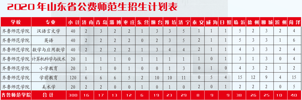 齐鲁师范学院2020年招生计划表