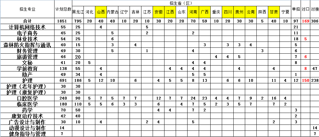 大兴安岭职业学院2020年普通高校招生计划