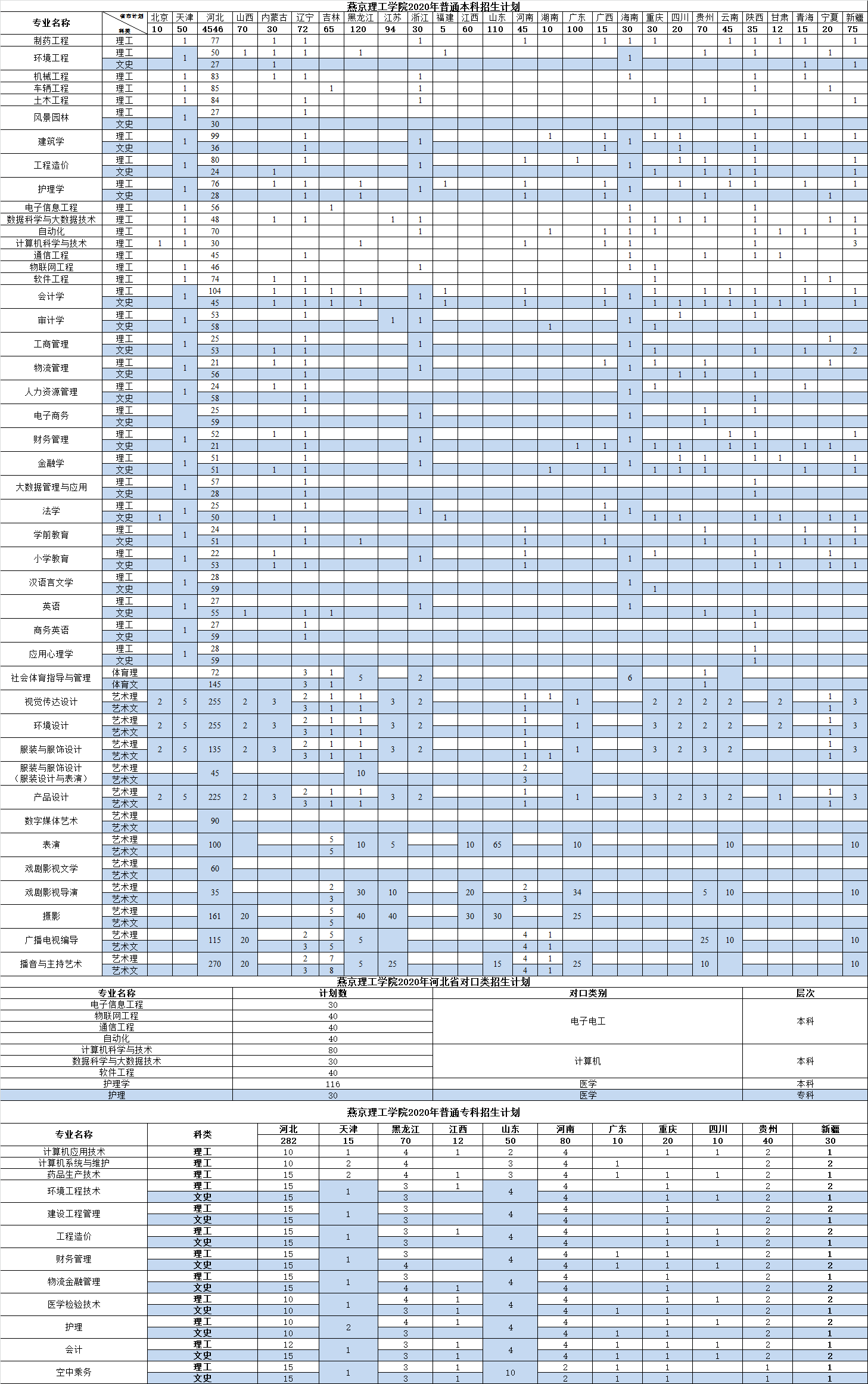 燕京理工学院2020年招生计划