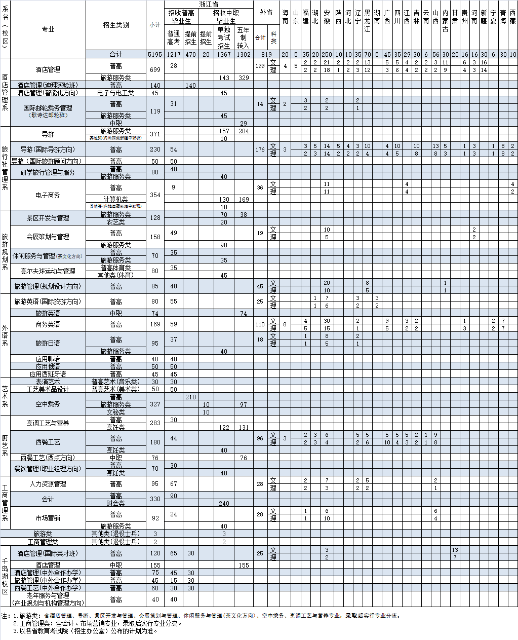 浙江旅游职业学院2020年分专业招生计划