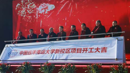 中国远洋海运集团、青岛市政府、西海岸新区政府、上海建工集团、山东省港口集团的领导共同推杆,挖掘机正式启动作业,宣告中国远洋海运大学新校区建设正式开工。