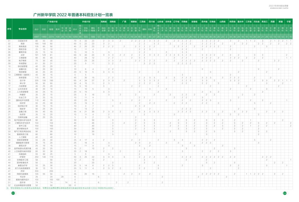 广州新华学院(原中山大学新华学院2022年招生总计划8335人,其中普通类本科招生计划5400人,含广东省4087人,外省1259人,其他计划54人,另有专升本招生计划2935人。