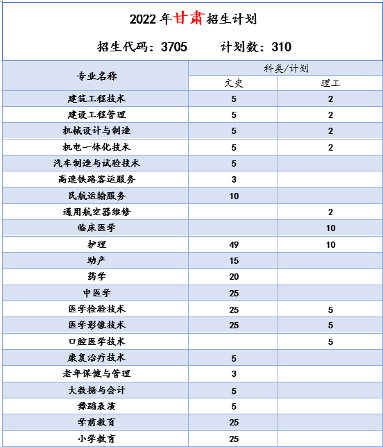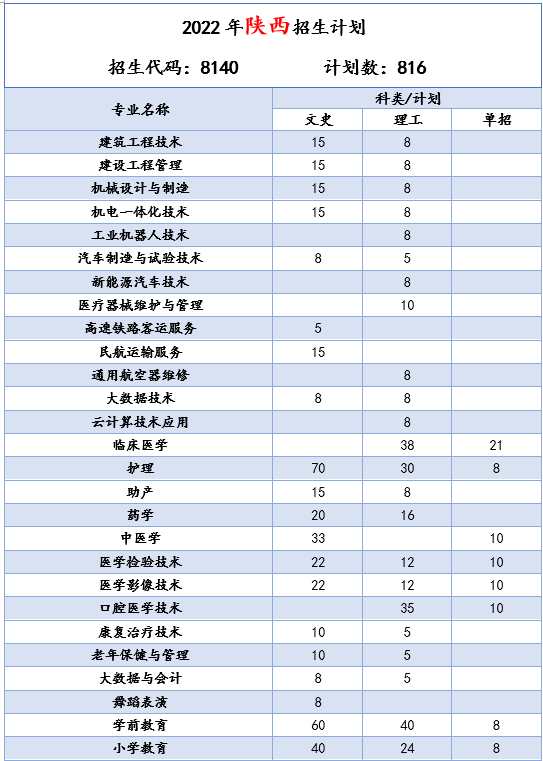 商洛职业技术学院2022年高职分省、分专业招生计划