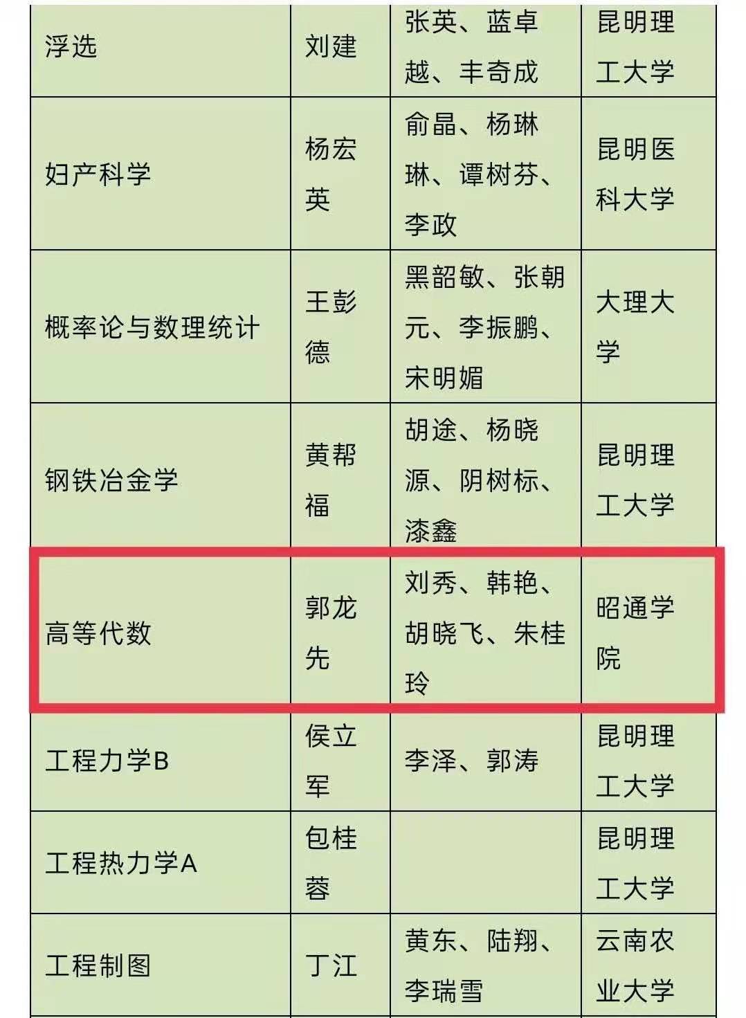 12月7日,云南省教育厅公布了首批一流本科课程认定结果,由我校教师郭龙先带领课程团队负责的《高等代数》课程被认定为省级线下一流课程。