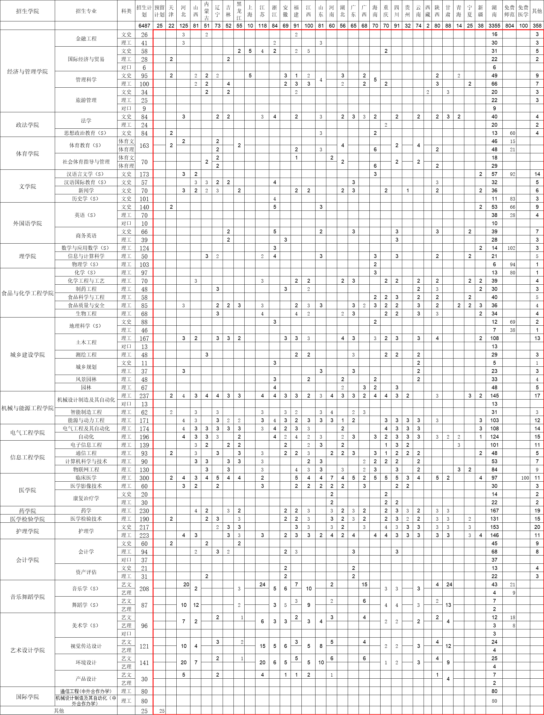 邵阳学院2020年招生计划表