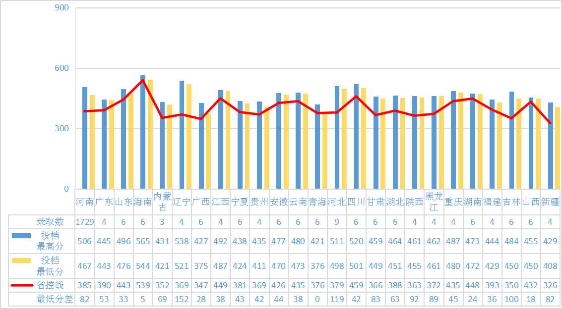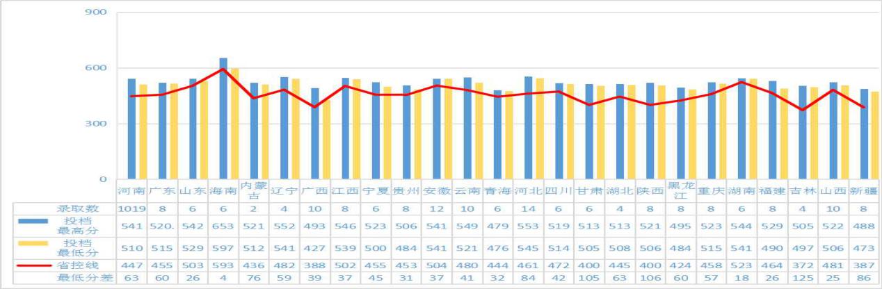 河南财政金融学院2019年(分省)普通高校招生本科录取分数线