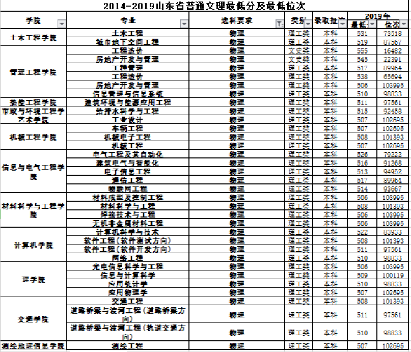 山东建筑大学2020年高考录取工作分省分专业分析(云南省)