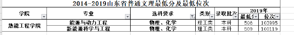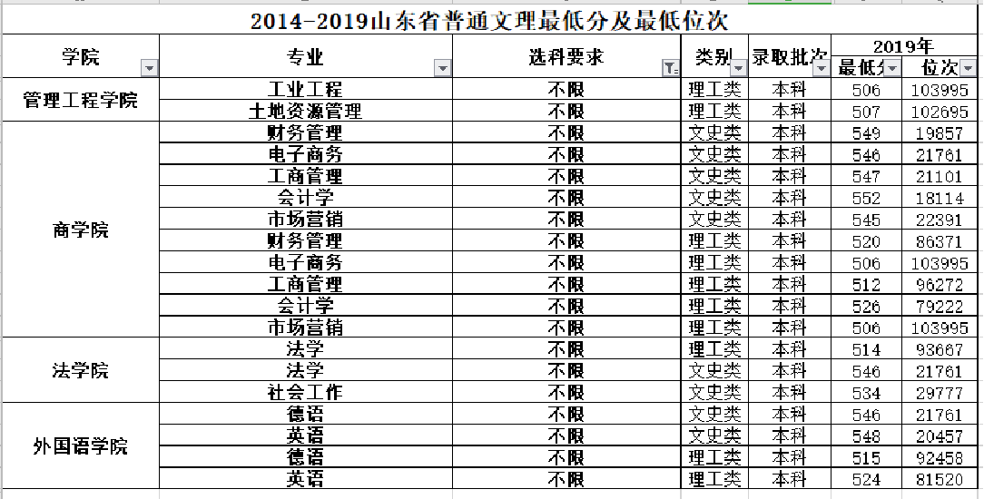 不限选科的专业往年录取情况(2019年)