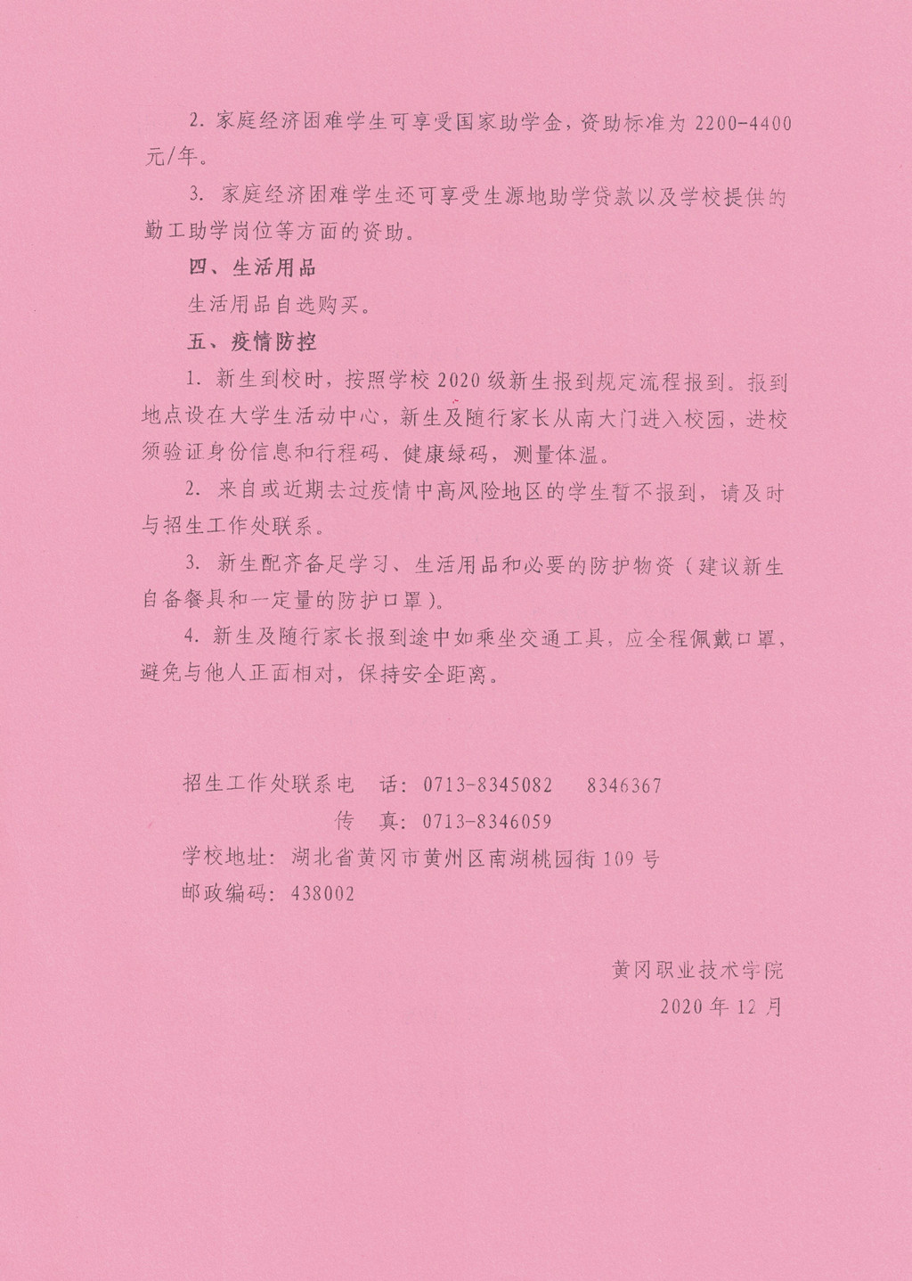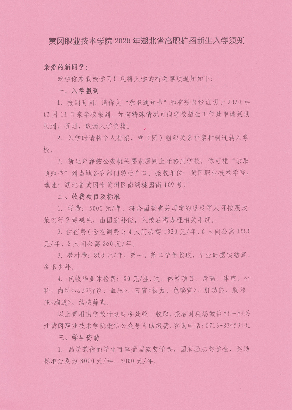 黄冈职业技术学院2020年湖北省高职扩招新生入学须知