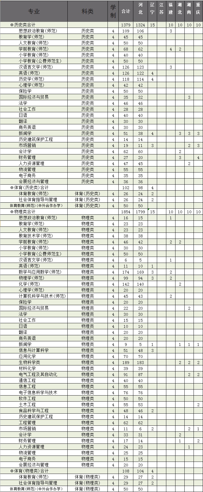 2022年廊坊师范学院“3+1+2”模式高考改革省份招生计划表(本科)