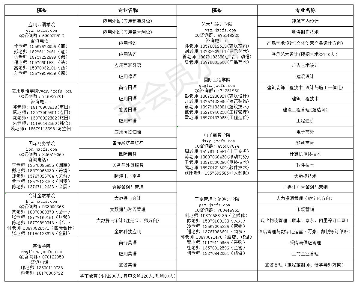 办学条件优越,专业特色鲜明。学院地处南昌东高新开发区,位于风景秀丽的艾溪湖湿地公园和瑶湖森林公园之间,校园“中西合璧,现代典雅”,被评为江西省高校“最美校园”。学院建筑面积30.9万㎡,纸质图书117.3万册,校内外实训基地300余个,建有4800㎡的校内产学园、大学生创业孵化园和创业就业示范基地等。学院开设商务英语、国际商务、会计、电子商务、学前教育等47个专业,拥有英、日、德、韩、法等11个语种,先后与30所海外高校建立了合作关系,通过专升本、专升硕及顶岗实习等多种培养模式,提升学历层次、语言应用能力和专业技能。