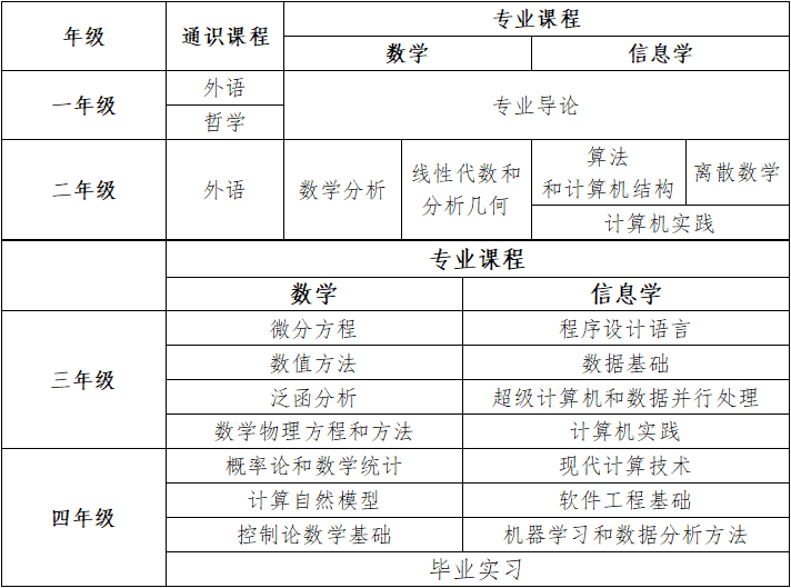 在课程设计上,把数学专业与计算机软件专业有机地结合在一起,以并行算法和超级计算机应用为重要内容。在培养目标上,坚持培养高水平应用数学专业人才,既突出厚基础、严要求,也强调实用性、全方位。在培养特色上,在打牢扎实雄厚的数学功底的同时,培养学生具有很强的计算机应用能力和扎实的数学建模能力,以满足科技发展对专门技术人才的迫切需求。